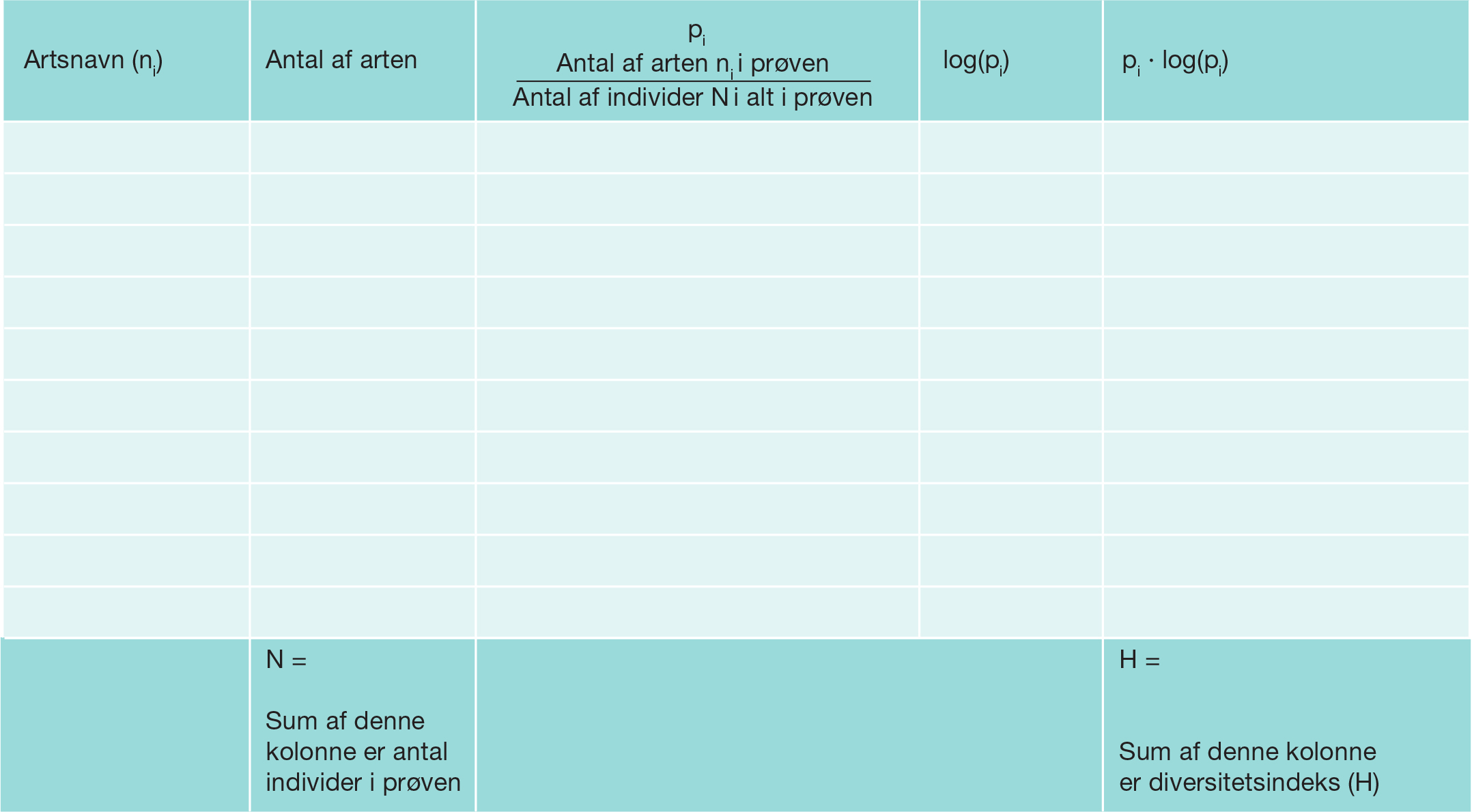 SE OGSÅ MATERIALER - SHANNON INDEKS REGNEARK