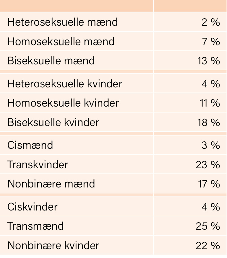 Andele som nogensinde har forsøgt at begå selvmord. Projekt Sexus, 2019.